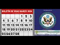 El boletín de visas para el mes de marzo 2024, corresponde al sexto boletín del año fiscal 2024, recordemos que el año fiscal empieza el p...